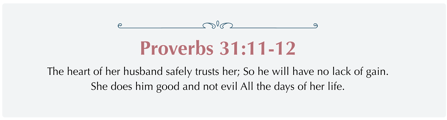 See, we don’t know how often our sweet sister in Proverbs 31, encouraged her husband. We don’t know how often he needed her.